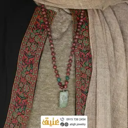 مشخصات سینه ریز آنتیک جاسپر سبز، فیروزه آفریقایی و رودونیت مات معدنی طرح مقبره بافت گره ای