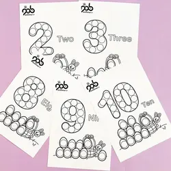 پکیج دات استیکر و کاربرگ اعداد انگلیسی و اشکال هندسی